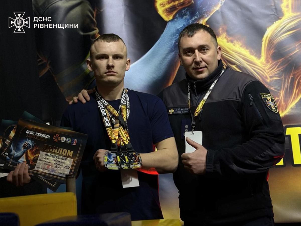Рятувальник з Рівненщини Максим Усач продемонстрував неабияку силу волі та майстерність, здобувши перемогу у ваговій категорії 70 кг на праву та ліву руку.