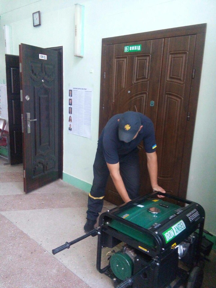 З метою недопущення зупинки виборчого процесу та тимчасового закриття виборчої дільниці задіяно спецобладнення обласного управління ДСНС, а саме: електростанцію «Iron Angel EG» потужністю 5,5 КВт та освітлювальну мачту.