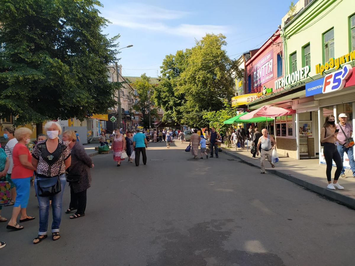 По вулиці Базарна у Рівному поліцейські розганяють вуличних торговців.