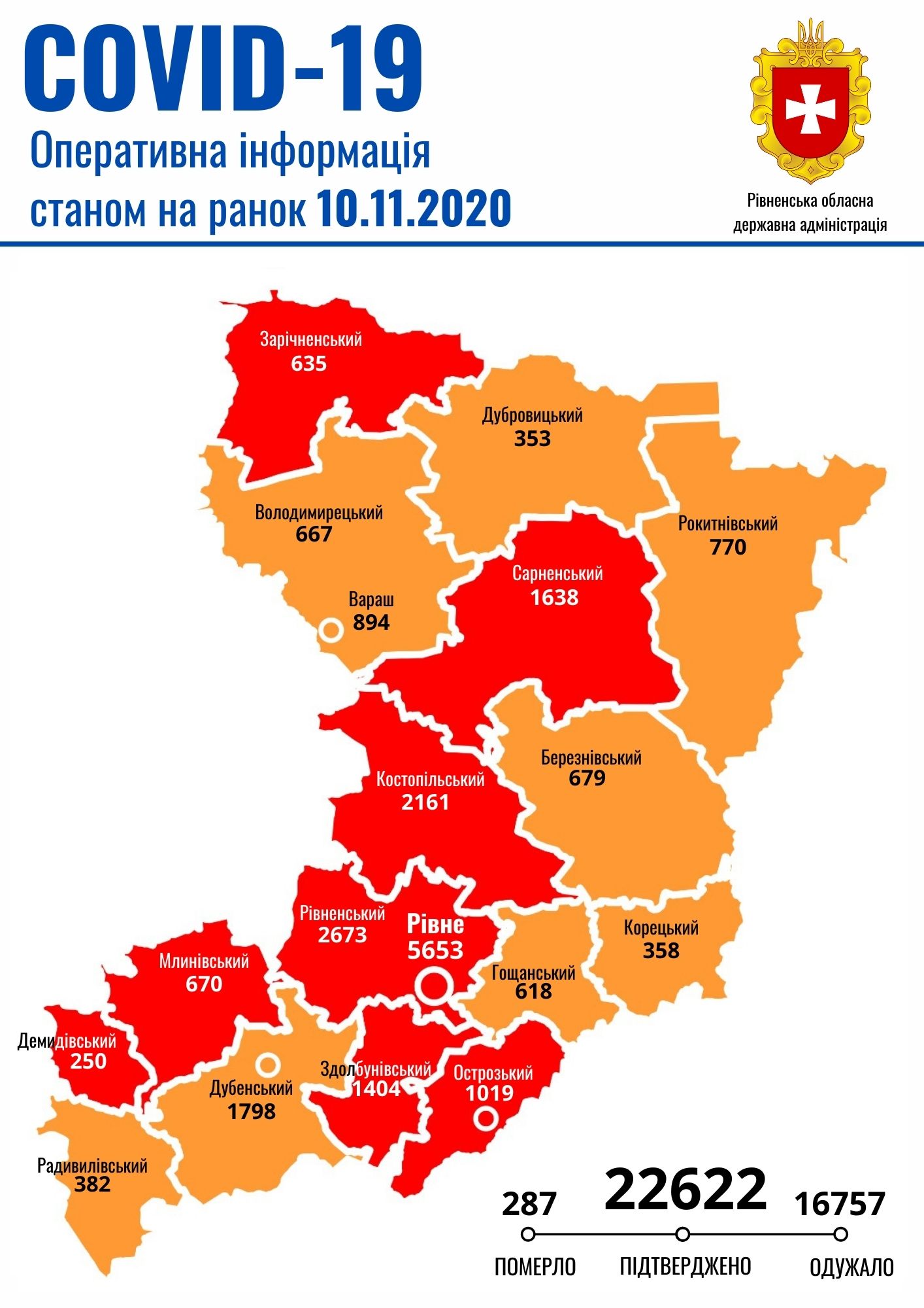 Таким чином в Рівненській області наразі маємо 22 622 випадки захворювання на коронавірусну хворобу.