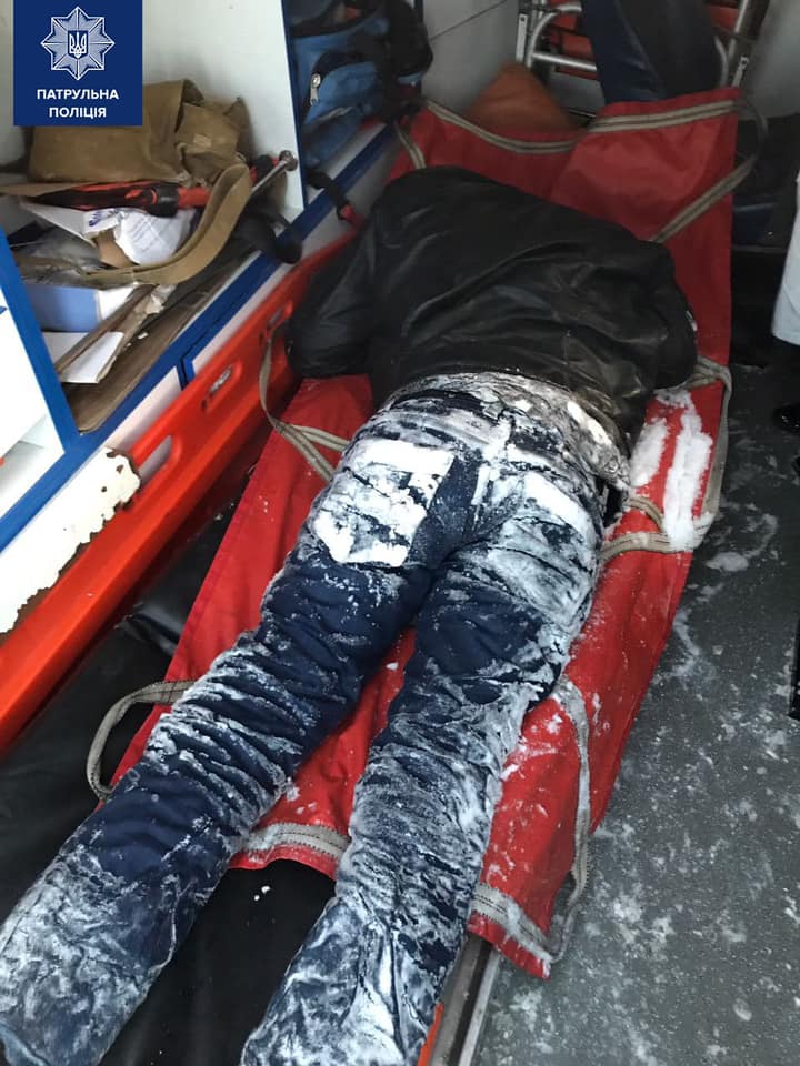 Далі патрульні близько кілометра несли чоловіка до "швидкої". Попередній діагноз: обмороження обличчя, верхніх та нижніх кінцівок.