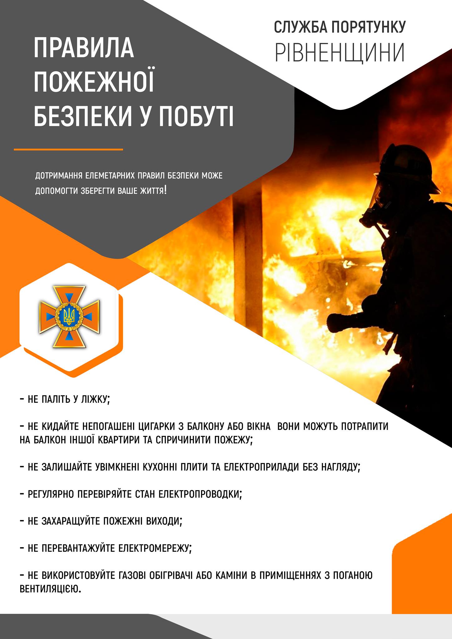 Тому рятувальники Рівненщини звертаються до мешканців дотримуватися правил пожежної безпеки у побуті.