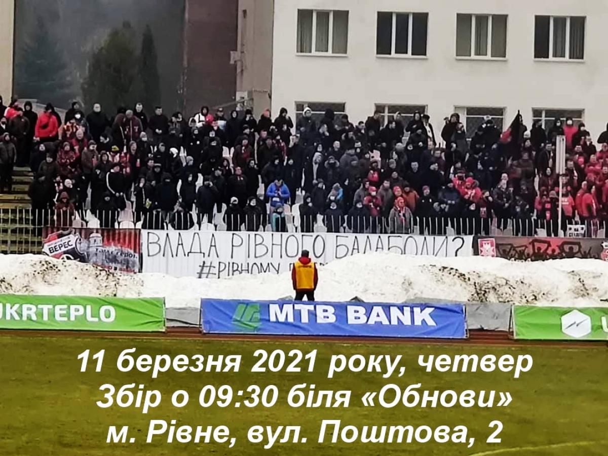 Фанати впевнені, якщо гроші виділить місто, то допоможе й область, а потім й держава: Але якщо буде мовчати місто, тобто головний замовник будівництва, – нічого не буде і ніхто не дасть ні копійки. Тим часом, вже півтора місяці тому, а саме 23 січня 2021 року, відбулась «Представницька інспекція ходу будівництва стадіону», проте грошей ніхто не дав й досі. Тому хочемо запитати: «Влада Рівного – балаболи?», - додають у фанатській спільноті.