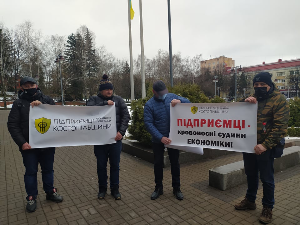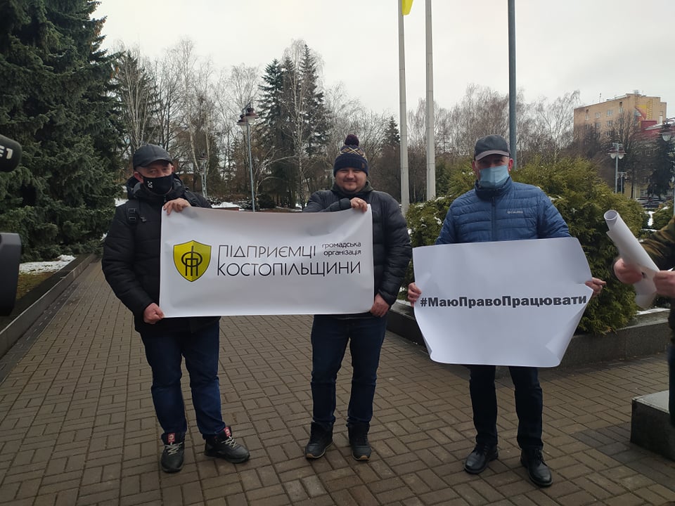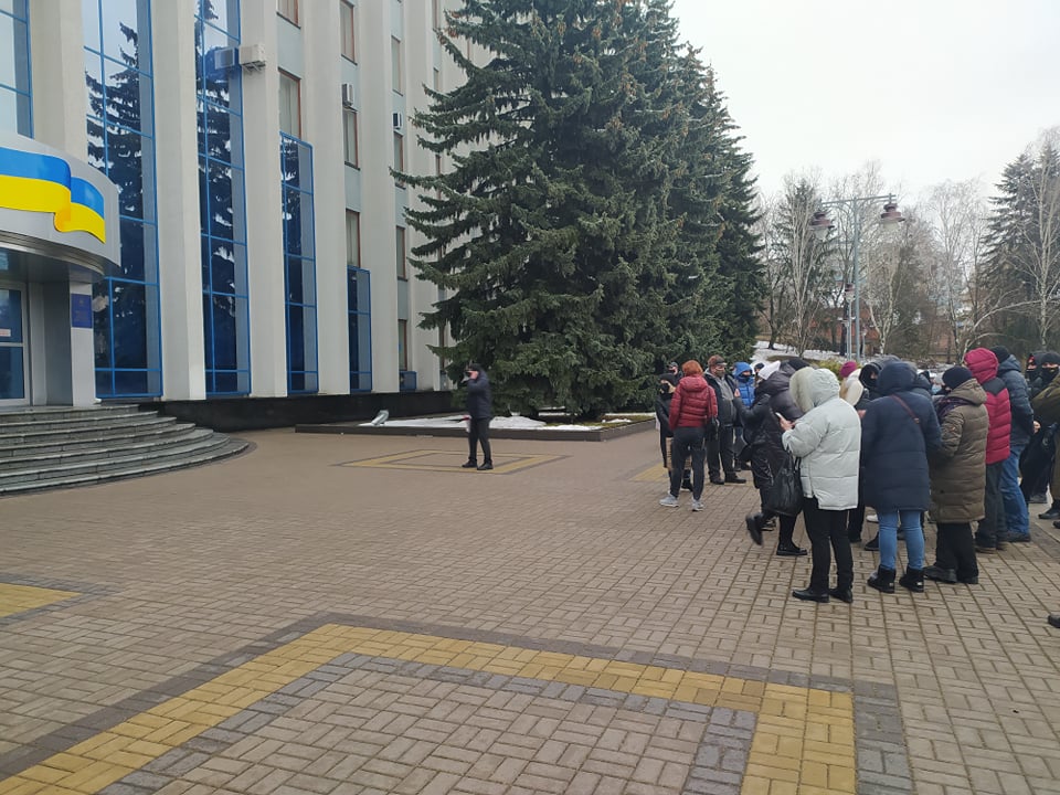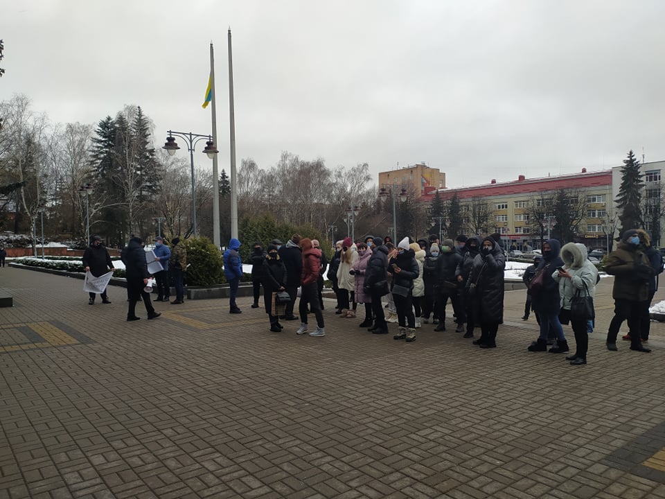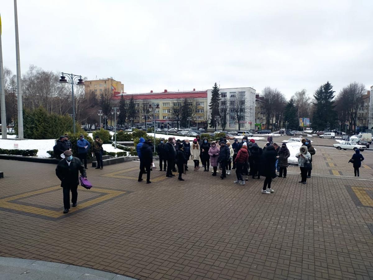 У Рівному біля будівлі облдержадміністрації зібрався імпровізований мітинг підприємців проти введення в області "червоної" карантинної зони.