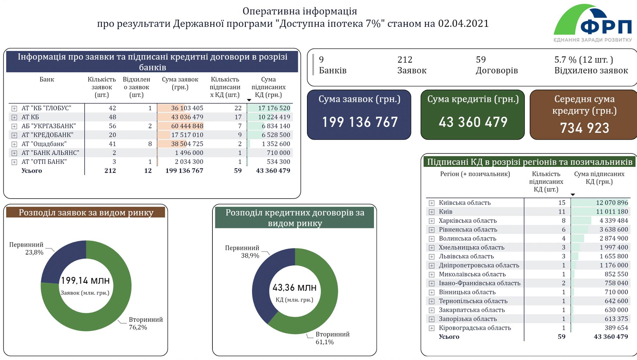 Загалом банки-партнери вже отримали понад 200 заявок на загальну суму майже 200 млн грн. Узгодили 28% заявок, 6% - відхилили, щодо решти - триває процес опрацювання.