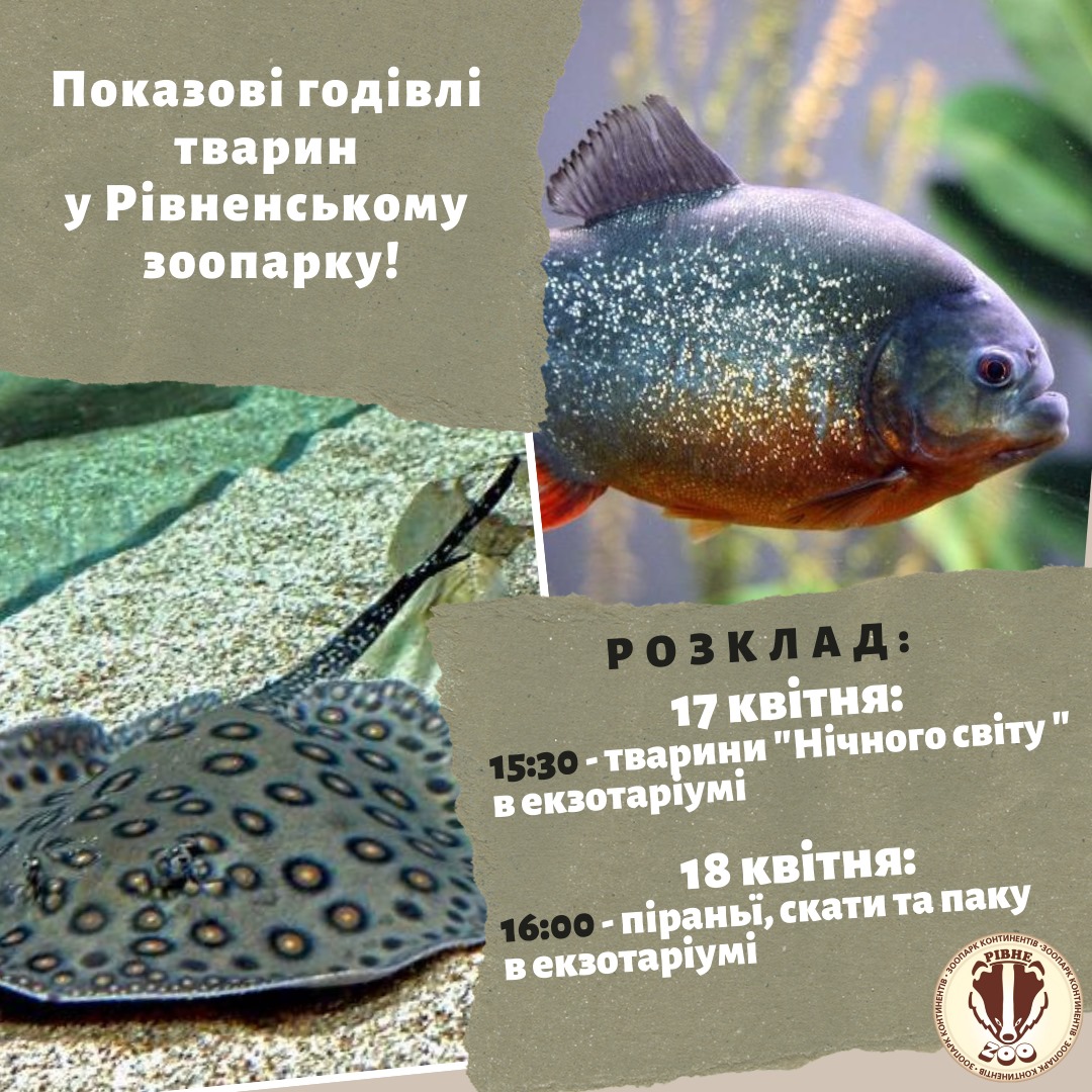 Працівники звіринцю запрошують рівнян та гостей міста на годівлю піраній, скатів і тварин «Нічного світу».