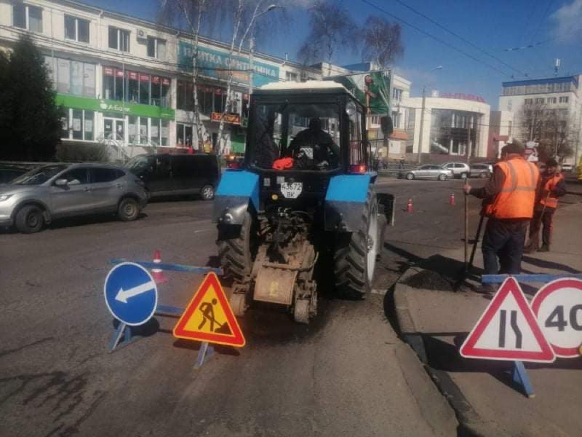 Комунальники здіи?снюють поточнии? ремонт дорожніх полотен на вулицях Марусі Чураи?, Богоявленська та Ніла Хасевича.