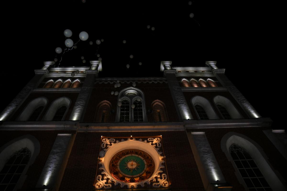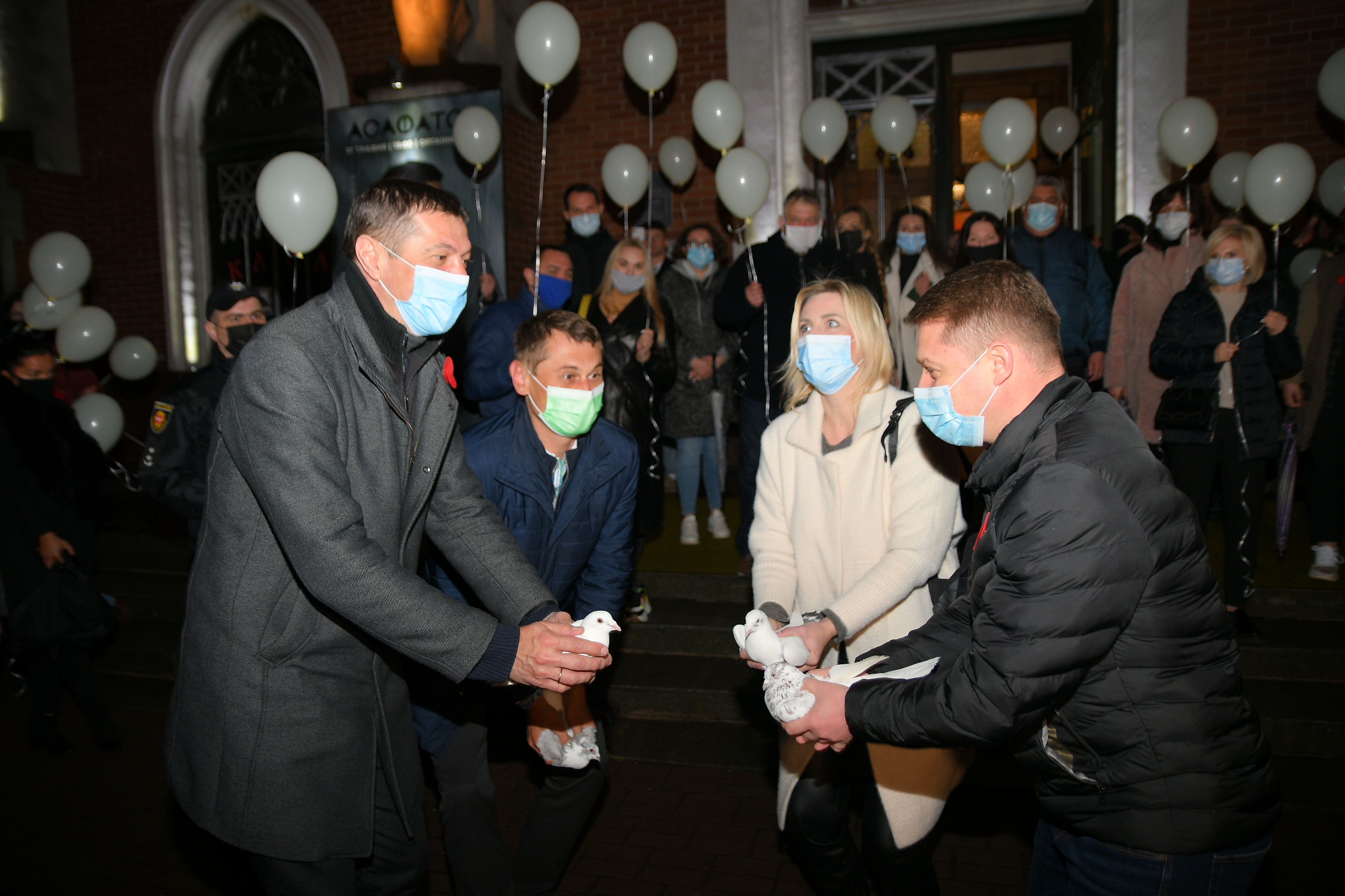 О 23:01 год. як нагадування про те, що саме в цей час 8 травня 1945 року вступив в дію акт про беззастережну капітуляцію нацистської Німеччини в Європі – у небо злетіли білі голуби та здійнялися білі кульки.