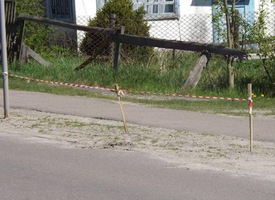 Поруч немає жодних попереджувальних знаків. Примітно, що попереджувальної стрічки на огородження клумб на тій же вулиці вистачило.