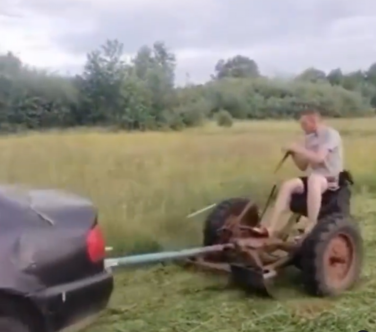 В мережі з'явилося відео як на Поліссі косять траву, завдяки автомобілю.