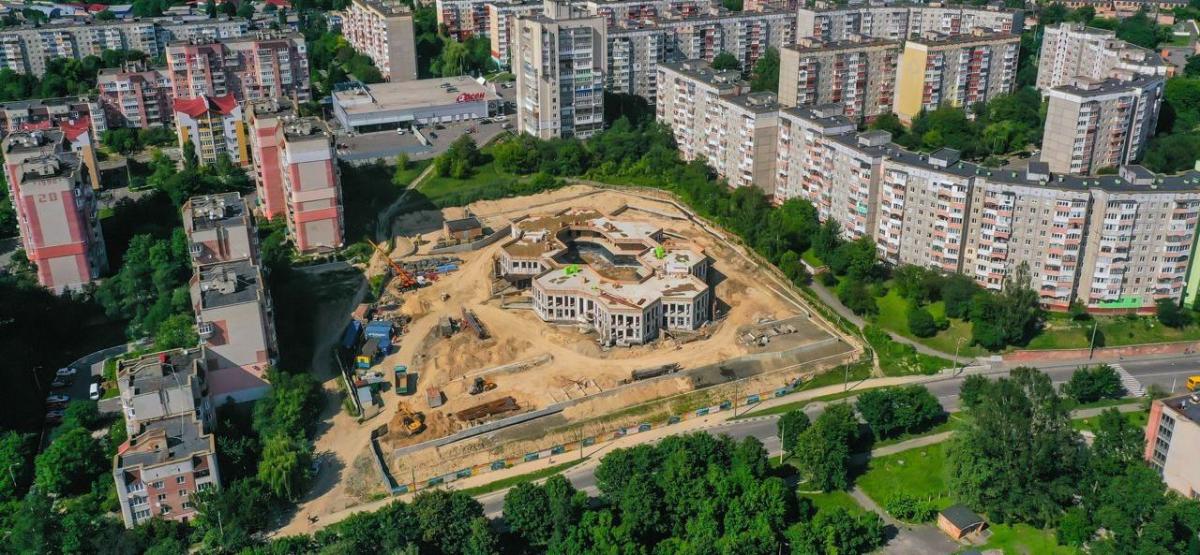 Відомо, що на будівельному майданчику вже завершують зводити два поверхи будівлі, монтують вітражі.