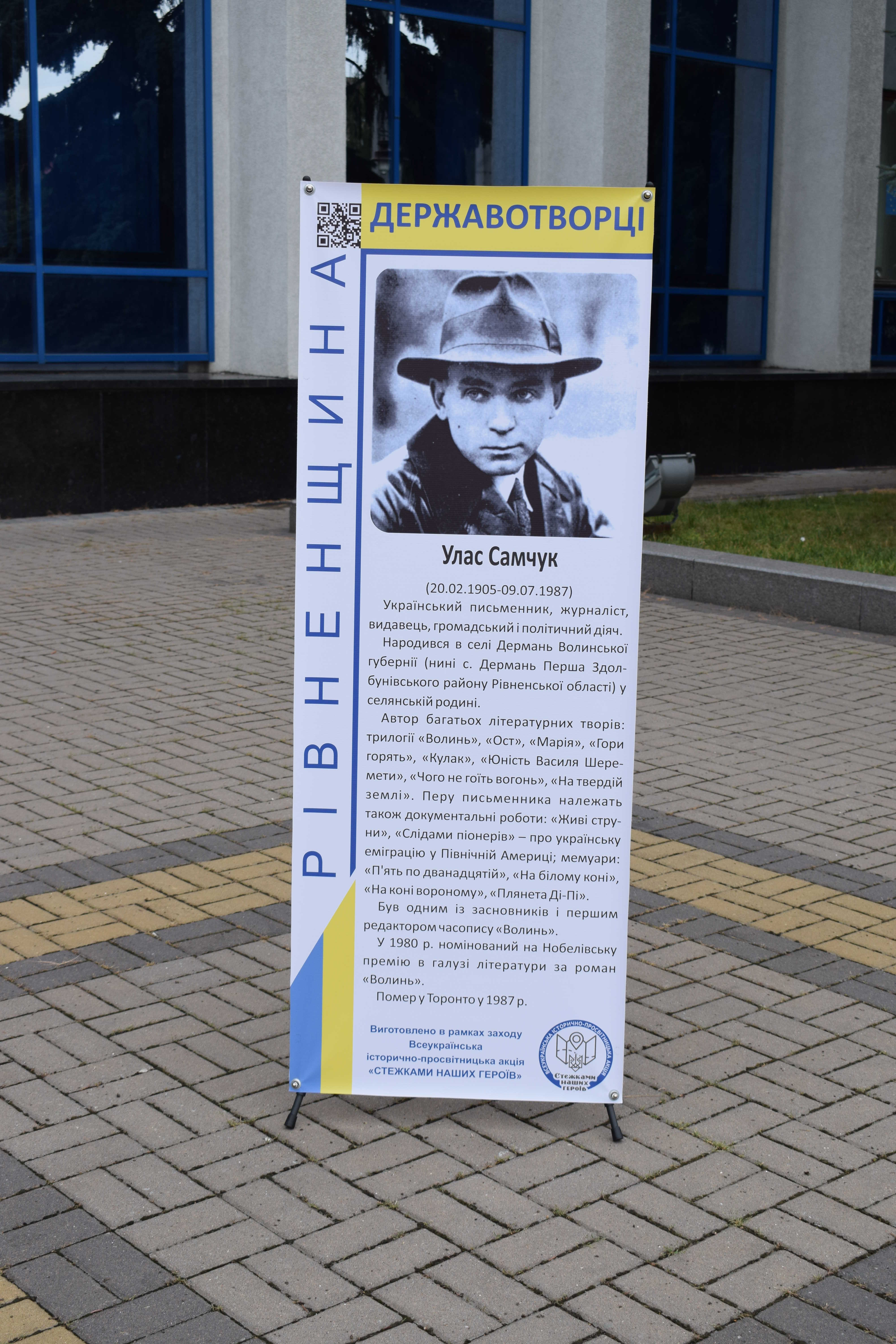 Серед героїв експозиції Северин Наливайко, князь Костянтин Іванович Острозький, Тарас Бульба-Боровець, Улас Самчук, Людмила Фоя, Ігор Гордійчук - відомі і не надто відомі загалові імена. Тому на кожному банері є QR-код, за яким через смартфон можна віднайти ще більше інформації про героя.