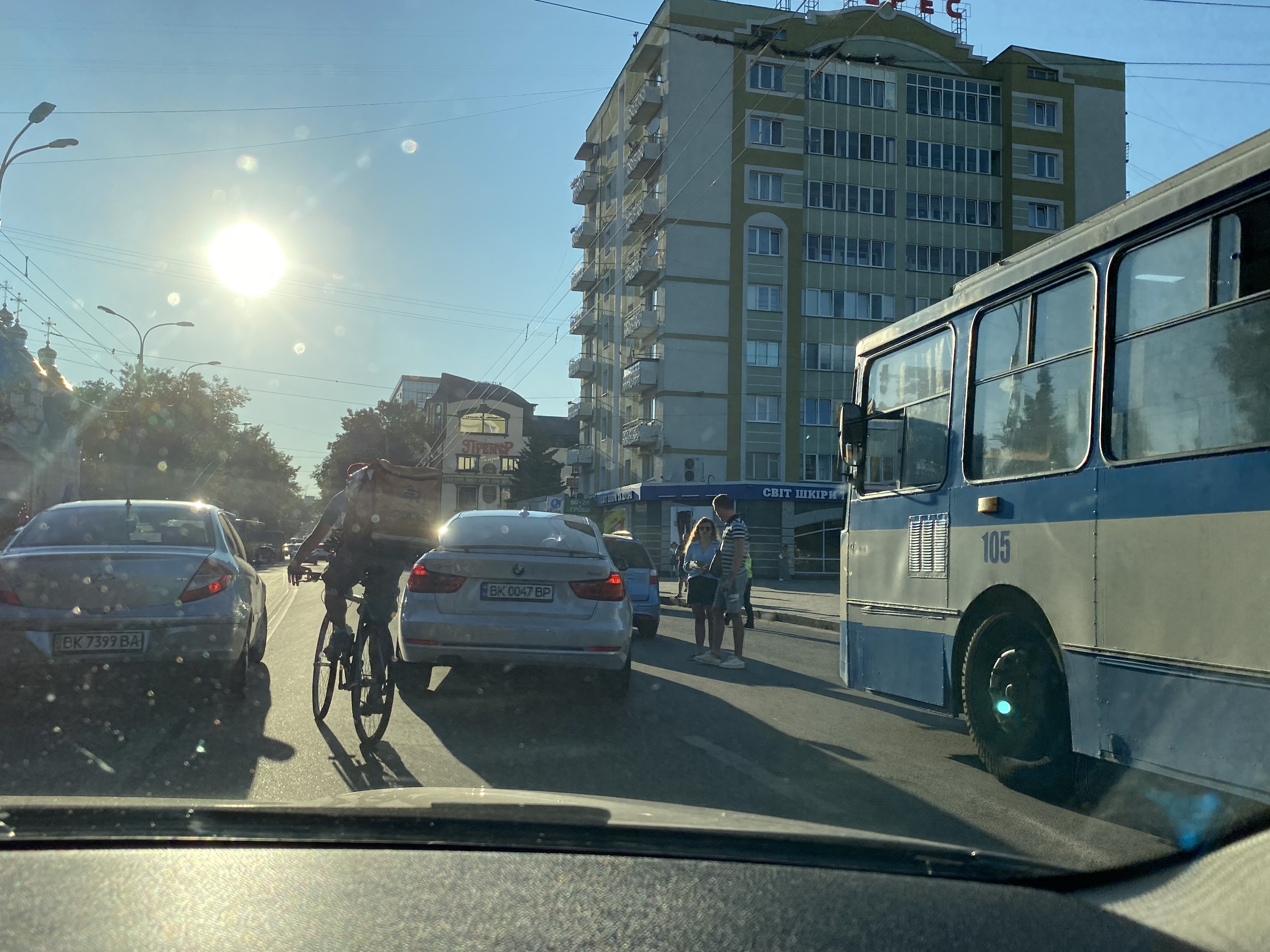 На вулиці Соборній у Рівному сталася автопригода, внаслідок якої зупинився рух тролейбусів.