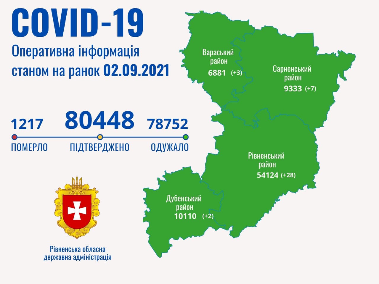 Таким чином в Рівненській області наразі маємо 80 448 випадків захворювання на коронавірусну хворобу.