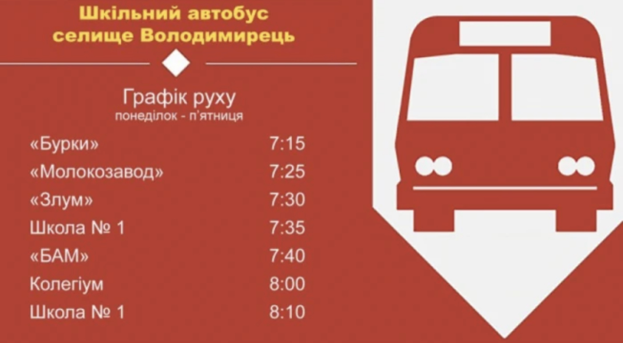 У селищі Володимирець дітей до школи підвозитиме автобус. Про це повідомили у селищній раді.