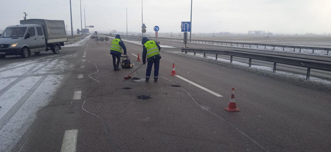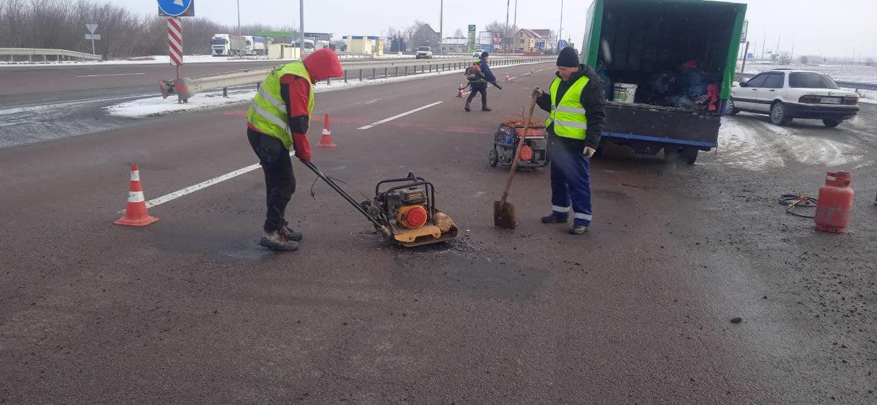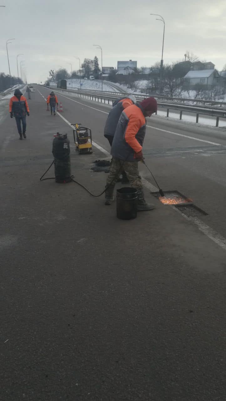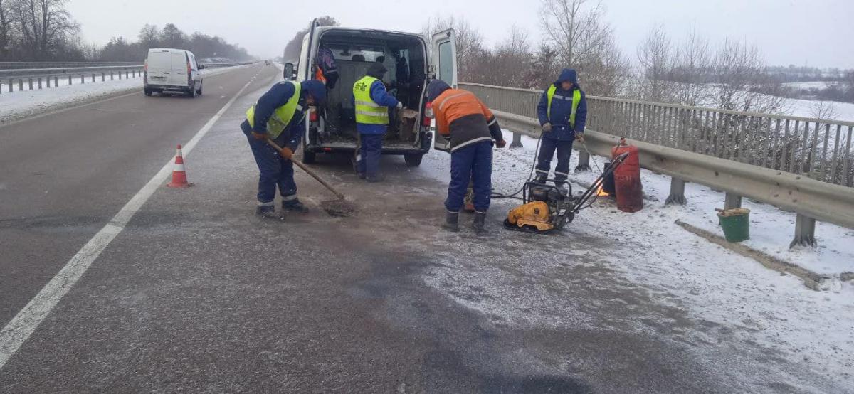 Щоденно по всій протяжності дороги М-06 в межах області працює 10 бригад дорожніх робітників. Із застосоуванням допустимого в таку погоду методу - холодним асфальтобетоном роблять все можливе, для якнайшвидшого відновлення не лише безпечного а й комфортного стану проїзду.