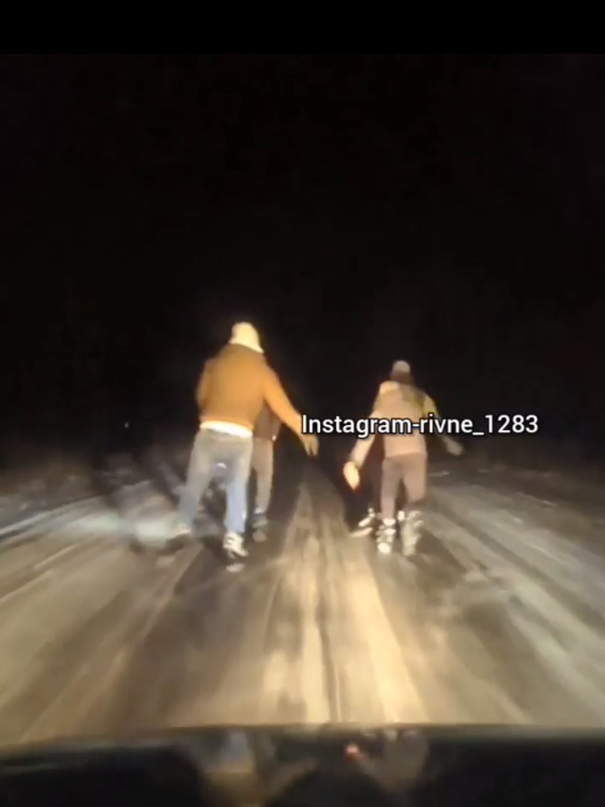 Про це повідомляє інстаграм спільнота rivne_1283. На відео видно, як четверо осіб їдуть по дорозі на ковзанах перед автомобілем.