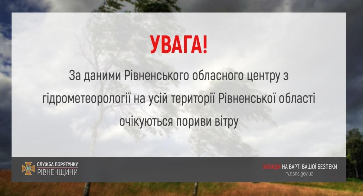 Рятувальники Рівненщини закликають громадян бути обережними. Не залишайте автомобілі під деревами, конструкціями рекламних щитів та електроопор. У жодному разі не підходьте до обірваних електропроводів.