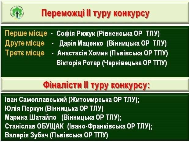Її наукова робота: "Удосконалення технологій вирощування сіянців дуба черешчатого (Quercus robur) із закритою кореневою системою в умовах Вовковиївського лісництва" (Науковий керівник Чандик Людмила Іванівна) стала кращою на цьогорічному конкурсі.