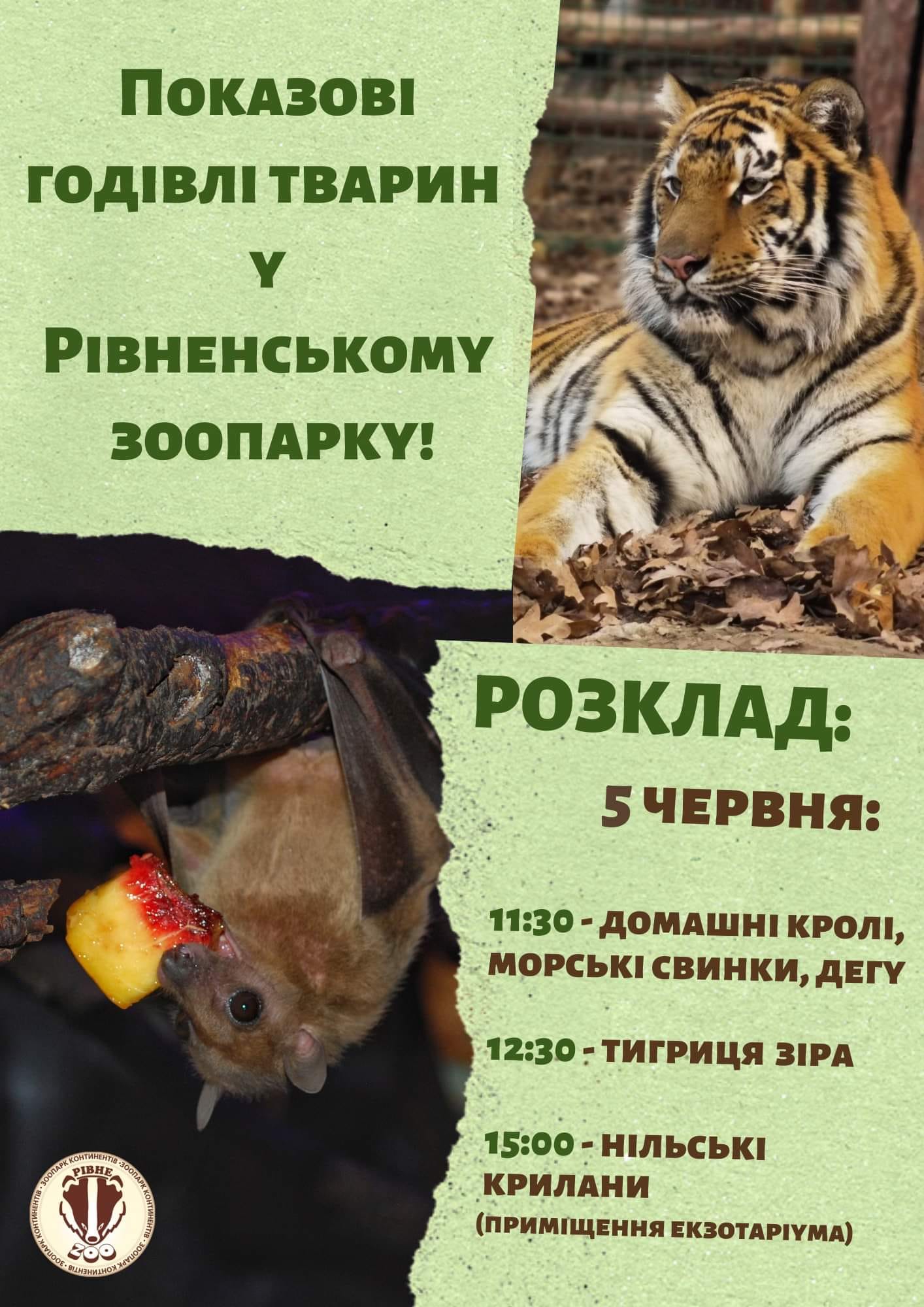 Сьогодні, 5 червня, у Рівненському зоопраку показово годуватимуть морських свинок, тигрицю та нільських криланів.