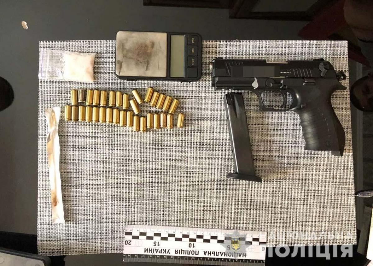За місцем проживання зловмисника вилучили два сліп-пакети з метамфетаміном, пістолет та 23 набої до нього, два мобільні телефони та банківські картки
