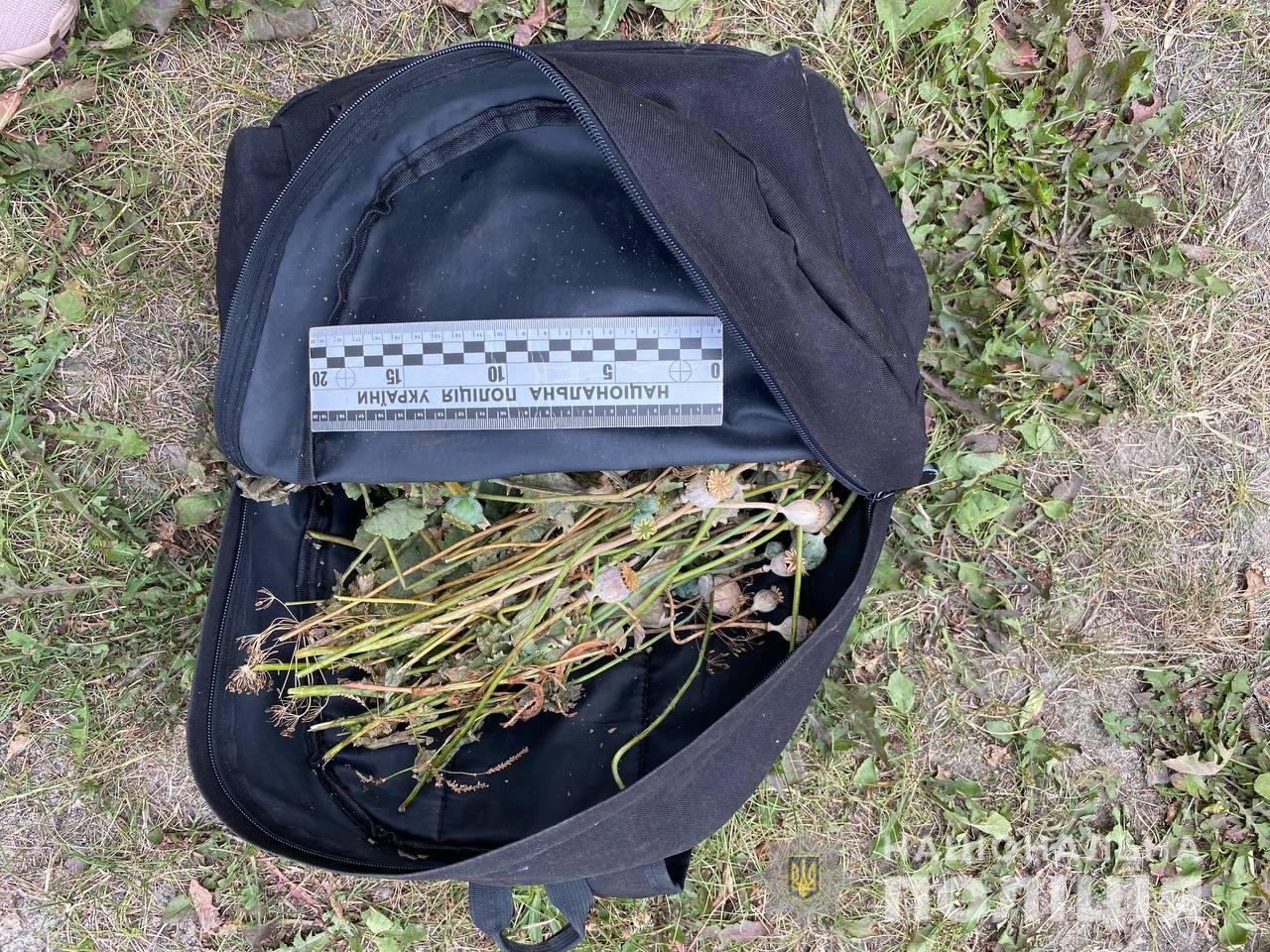 За результатами перевірки документів і поверхневого огляду поліцейські виявили у наплічнику 34-річного жителя села Антонівка головки та стебла маку. Він запевнив, що зрізав нарковмісні рослини на території закинутого нежитлового будинку для власного споживання.