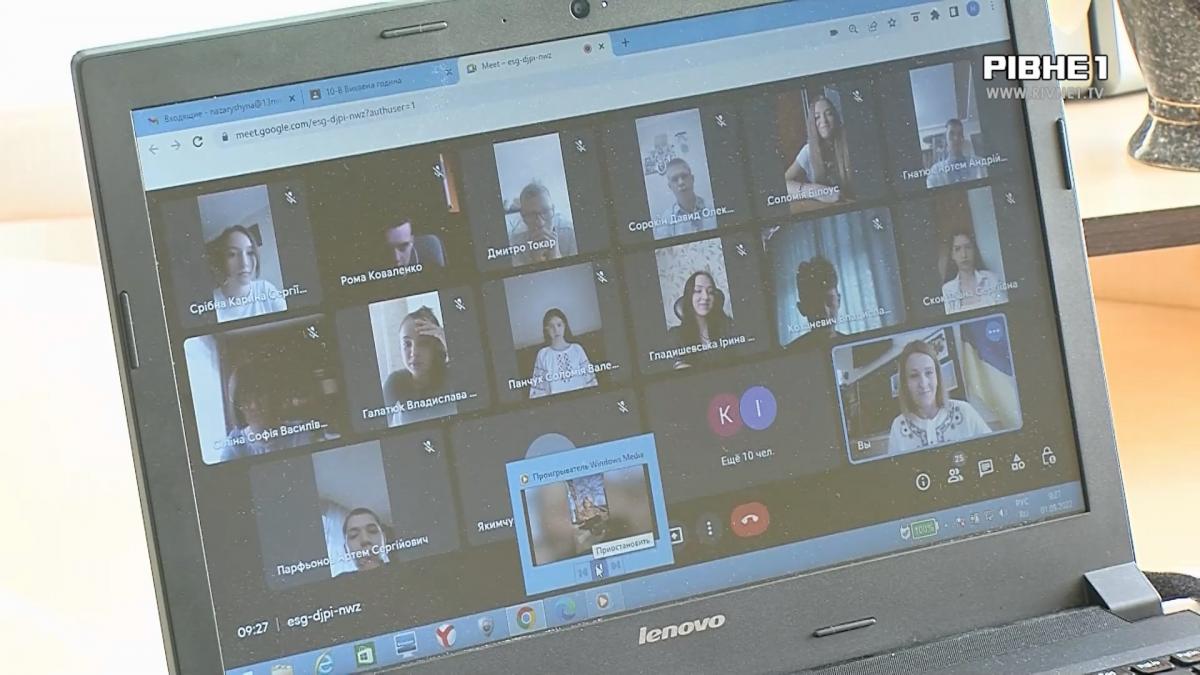 Класний керівник Леся Рибчак. Цьогоріч, для її першокласників День Знань та перший дзвоник проходить онлайн. Тема вступного уроку - "Ми українці, честь і слава незламним." Розпочинається з хвилини мовчання та пояснення, чому замість звичної шкільної лінійки, діти змушені розпочати навчальний рік вдома.