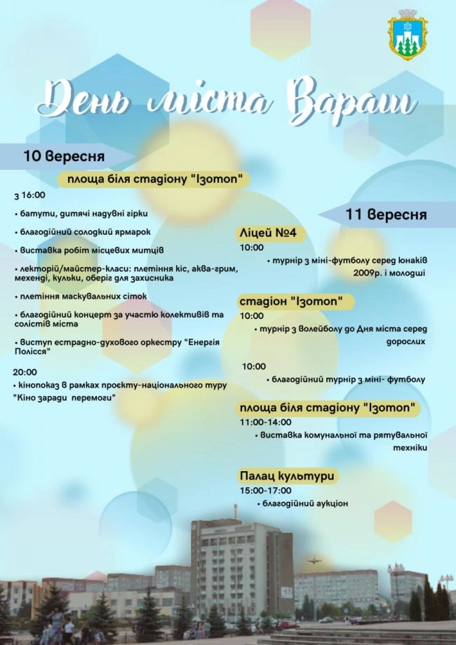 На сторінці Вараської міської ради опублікували перелік заходів, які відбуватимуться упродовж двох днів.