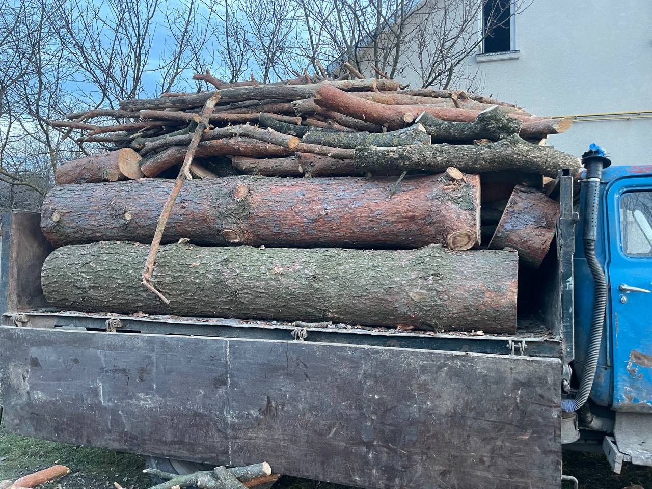 На місце події викликали слідчо-оперативну групу, яка під час огляду виявила в кузові автомобіля «ГАЗ» орієнтовно чотири куби деревини породи «сосна» та бензопилу.