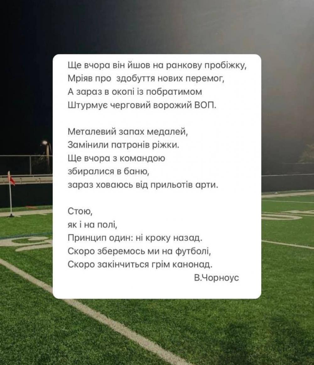 Ідеться про Володимира Чорноуса. Відомо, що чоловік із села Богдашів. Він присвятив свій твір спортсменам, які наразі не грають у футол і не займаються у залах, а перебувають в окопах на фронті: