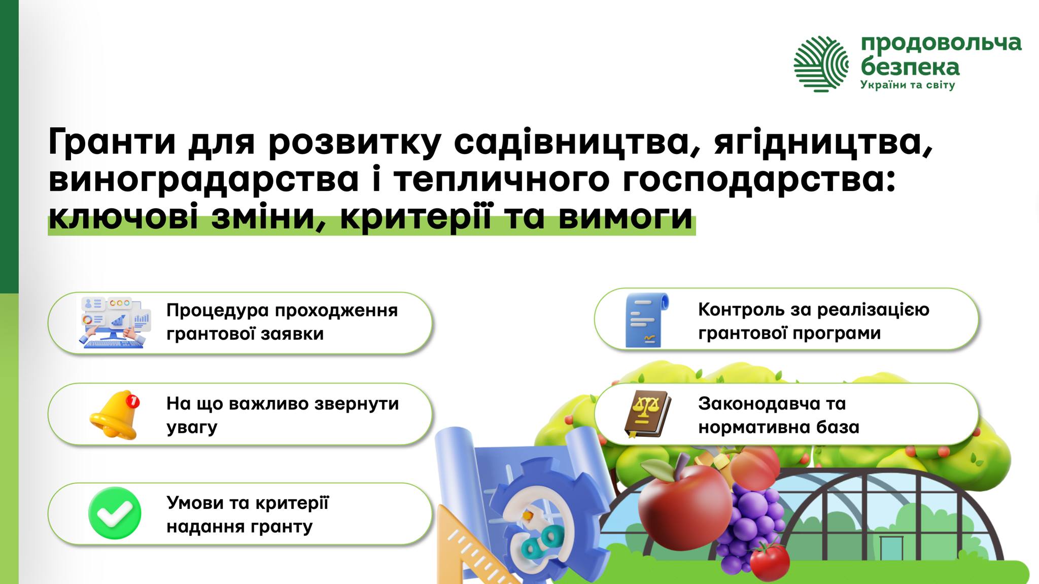 Загалом в Україні за 9 місяців від старту грантових програм із розвитку садівництва, ягідництва, виноградарства і тепличних господарств уже погоджено 104 гранти на суму в майже 506 млн грн.