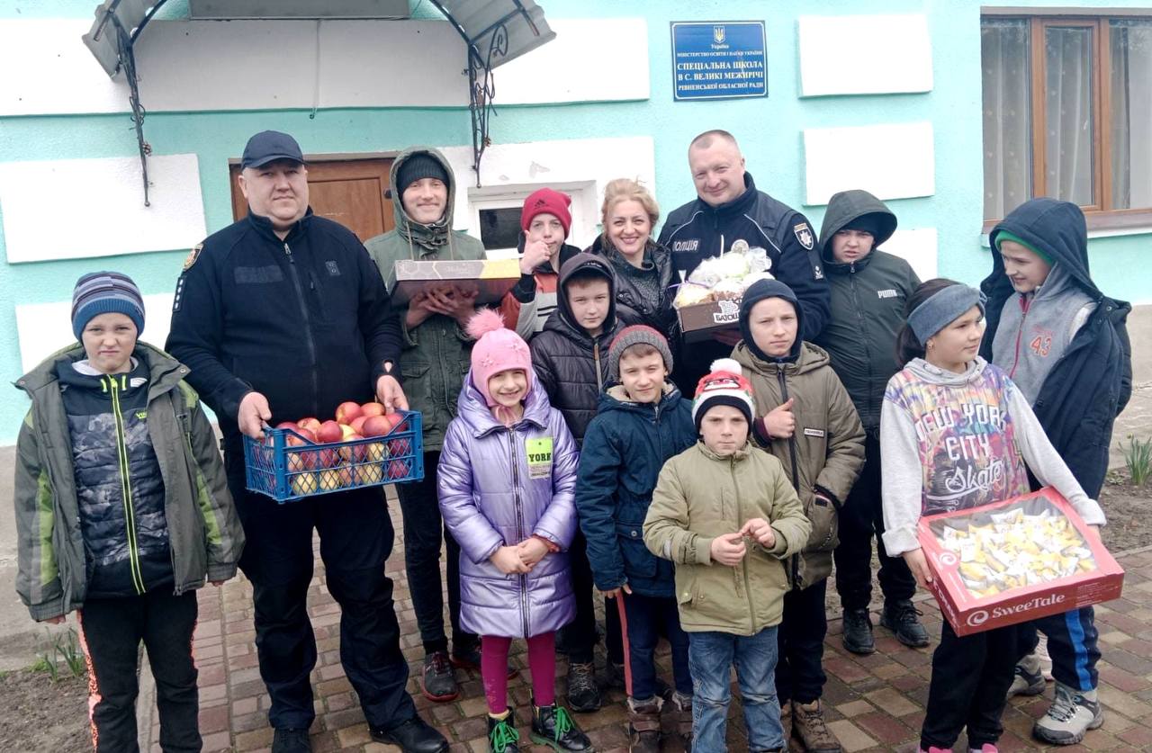 Працівники відділення поліції №7 (м. Корець) із великодніми смаколиками завітали до вихованців підшефного навчального закладу у селі Великі Межиричі.