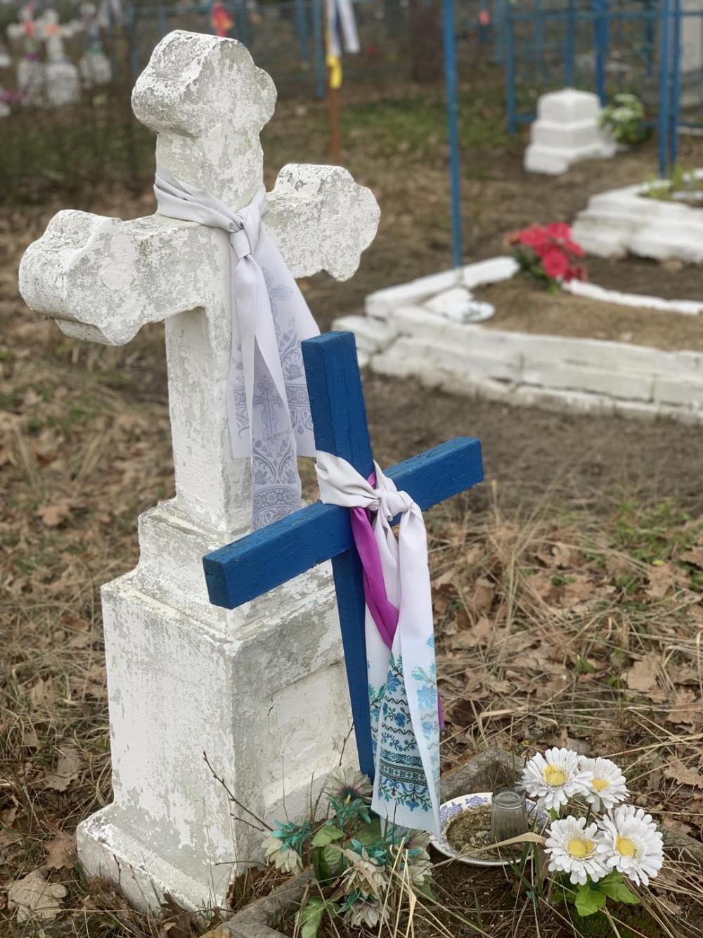 Тому тут до цього часу дотримуються традиції наряджання могильних хрестів саме рушниками, хустинами та фартушками, а стрічки вішають хіба для декору, як прикрасу.