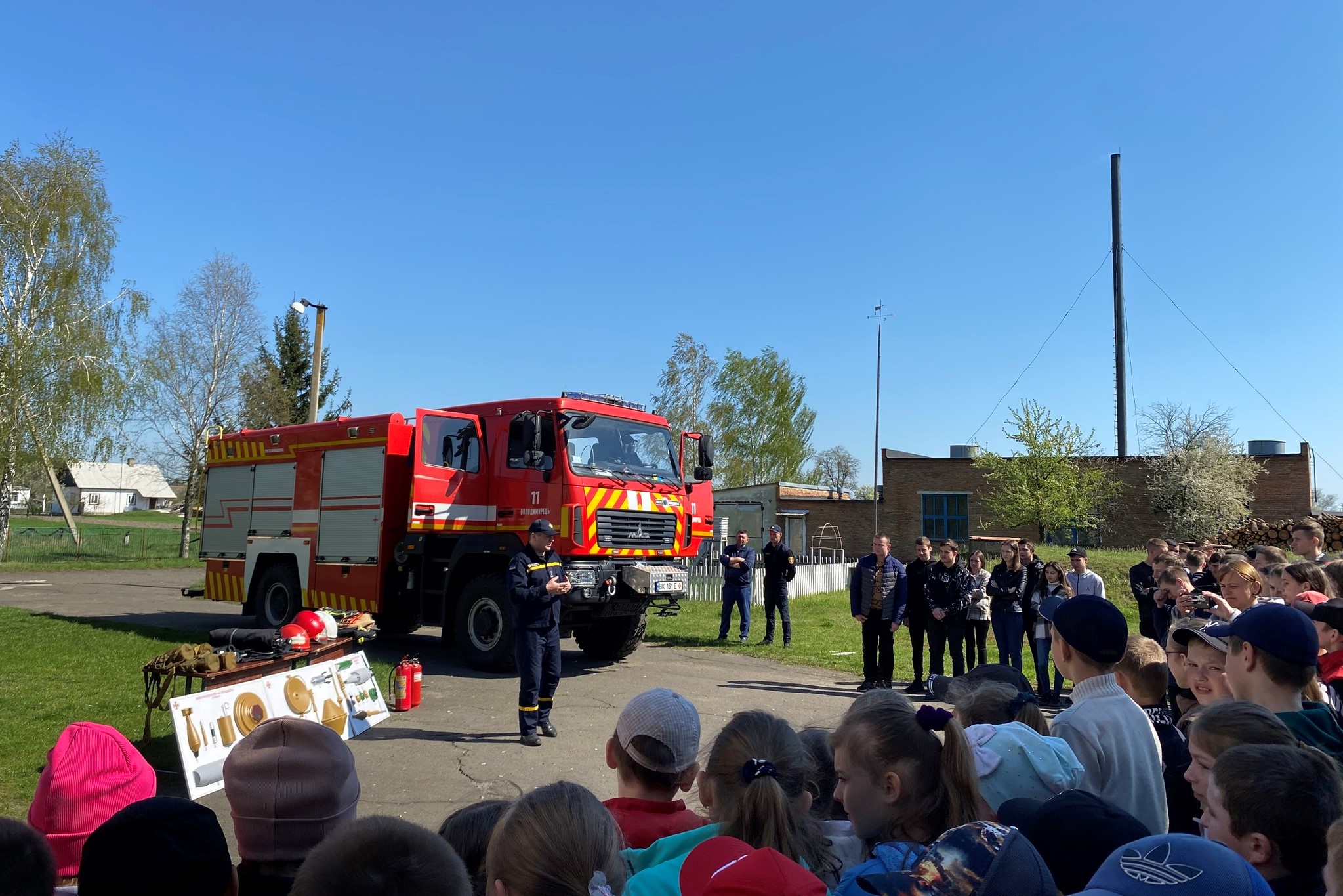 Рятувальники розповідають учням про мінну та пожежну безпеку, як діяти під час грози та правила безпечного поводження на воді, також розповідають про свою професію, показують техніку та спорядження з яким мають справу щодня, демонструють як гасити умовну пожежу з допомогою вогнегасника та пожежного ствола, та ін.