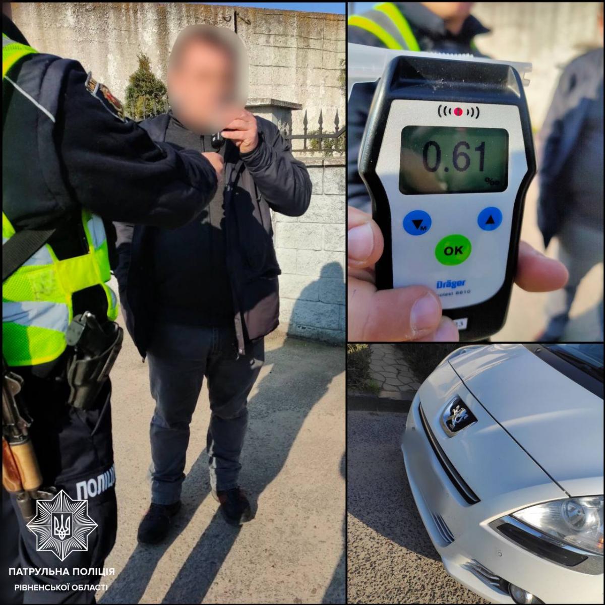Під час спілкування у водія помітили ознаки алкогольного сп'яніння і запропонували йому пройти огляд. 35-річний житель Рокитнівського району погодився, результат — 0.61 проміле, - йдетсья у повідомленні патрульної поліції.