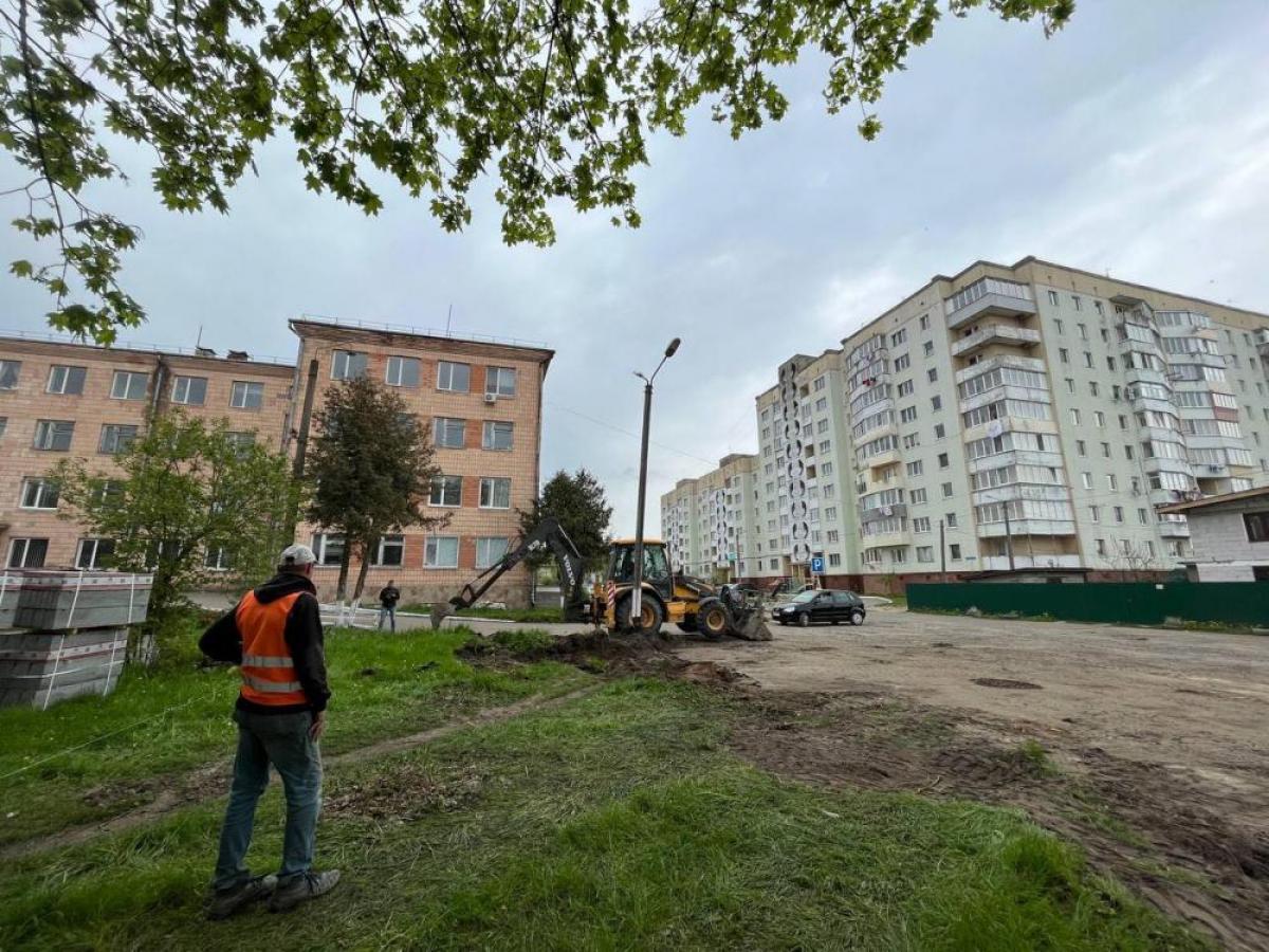 Наразі територію готують до облаштування парковки, яку буде збільшено майже в двічі. Після цього відремонтують дорожнє покриття (заїзд) та облаштують сучасні тротуари.