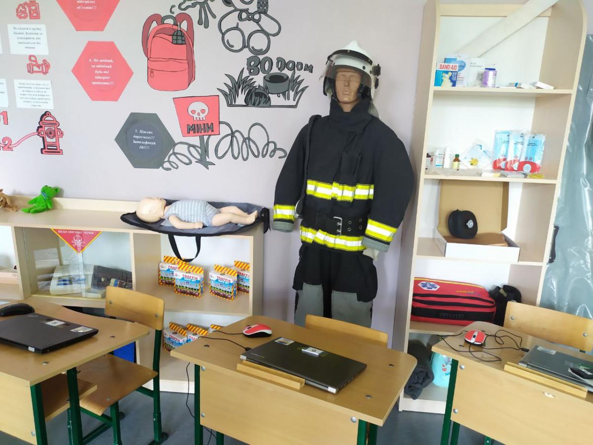 Клас безпеки оснащений ноутбуками, фліпчартами, телевізором, а також відповідними відеоматеріалами, презентаціями, макетами боєприпасів та різними видами вогнегасників. Ми вже давно відійшли від того, що навчання – це вчитель біля дошки. Сучасні діти здобувають знання через практичні завдання. А ще у програмі заплановані теми з надання домедичної допомоги та психологічного розвантаження. А це вже турбота про ментальне здоров’я. Нагадаю в Україні стартувала Всеукраїнська програма #Ти_як?, ініційована першою леді Оленою Зеленською, - сказав куратор освітньої галузі Сергій Подолін.