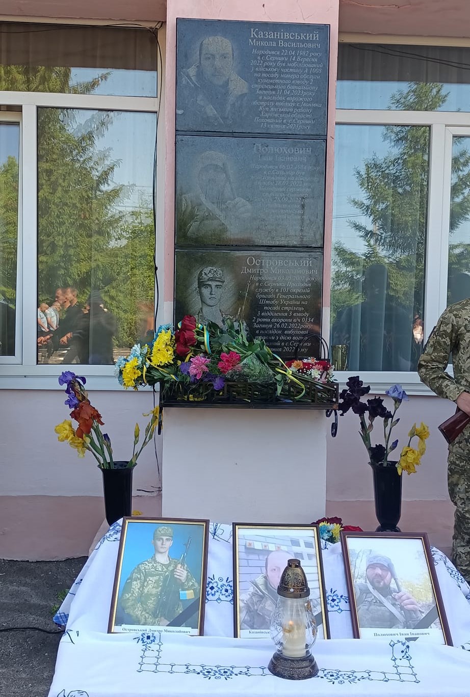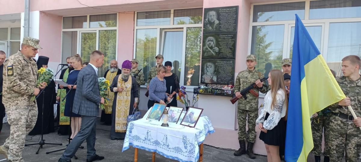 Меморіальні дошки, встановлені на честь колишніх учнів Серницького ліцею, нинішніх Героїв – Дмитра Островського, Івана Полюховича, Миколи Казанівського.