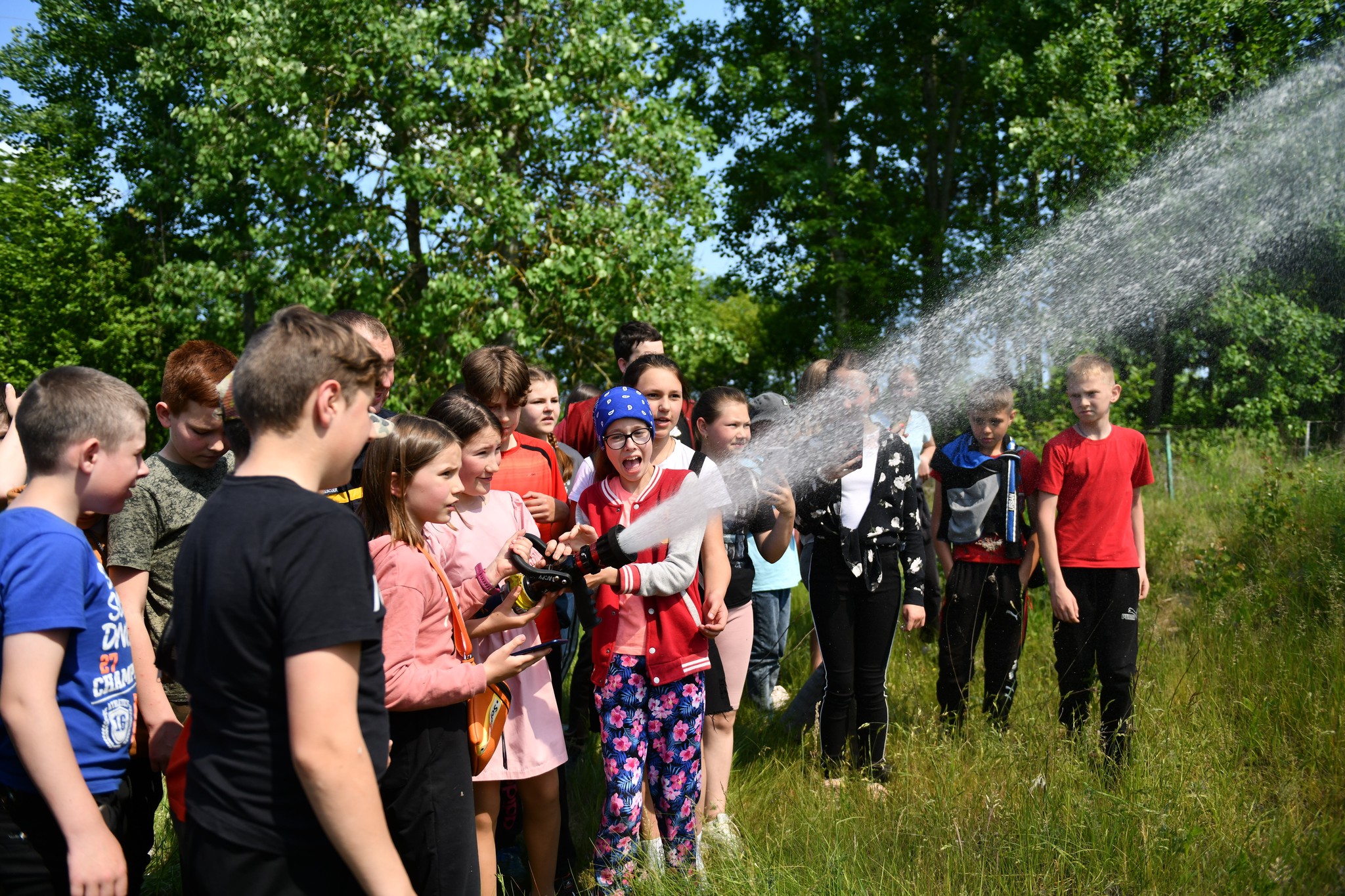 Натомість працівники ДСНС показали макети вибухонебезпечних предметів та наголосили на правилах поведінки під час їх виявленні. Не оминув малечу і "рятувальний дощ": після гасіння імпровізованої пожежі, дітки охоче охолоджувалися під водою.