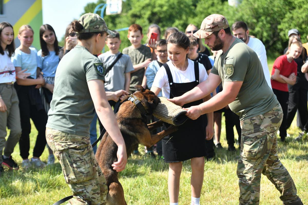 Поліцейські-кінологи продемонстрували здібності своїх чотирилапих напарників, до яких була прикута найбільша увага ліцеїстів, зокрема до п’ятимісячної Добі.