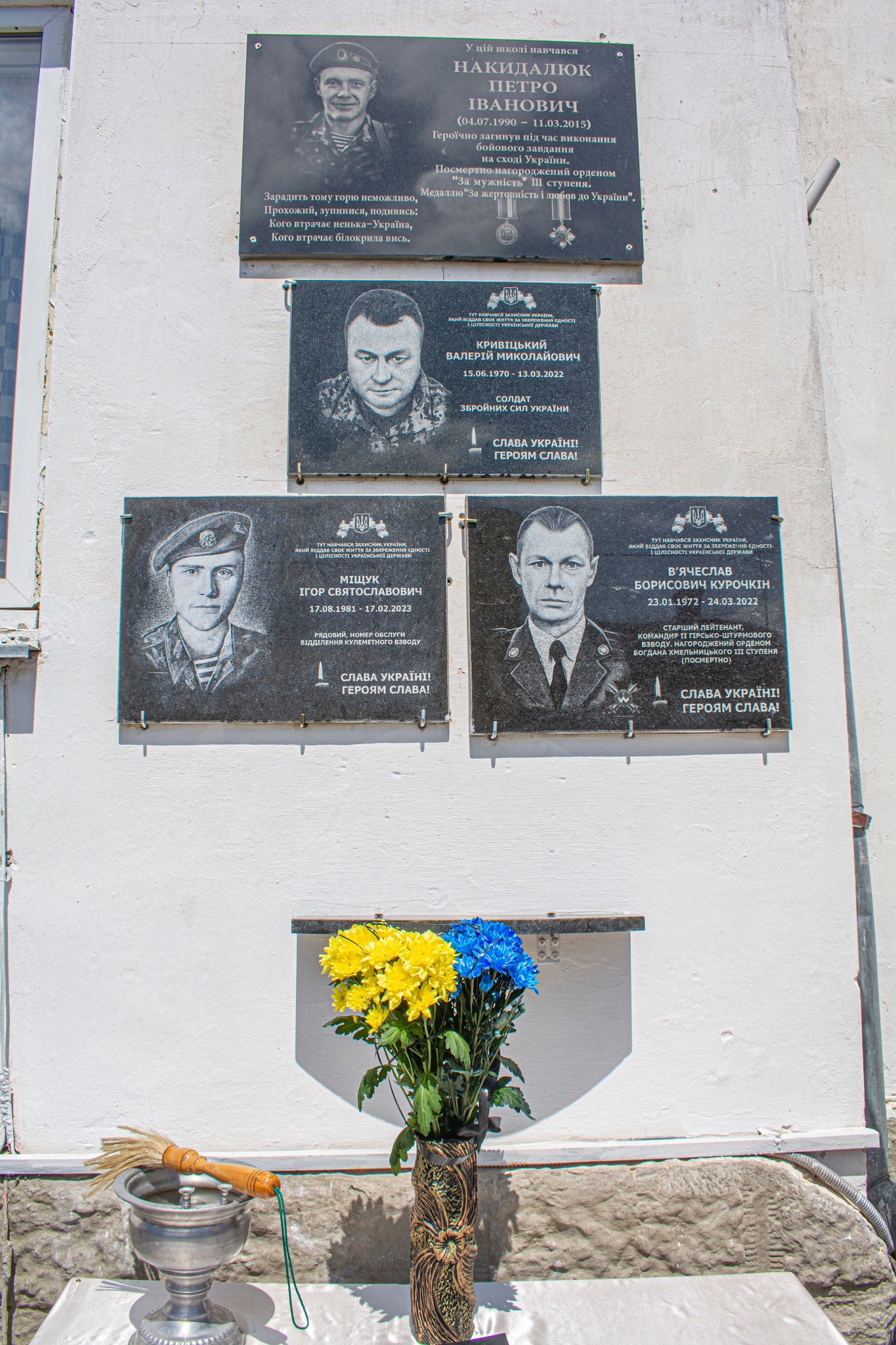 На фасаді ліцею №1 відкрито дошки пам'яті колишніх випускників - Героїв Віталія Прокопчука, Олександра Школярчука, Олександра Галяса, Андрія Вознюка, В'ячеслава Мельника. З будівлі ліцею №2 відтепер споглядатиме воїн-доброволець Роман Кубишкін. Пам’ятні дошки військовослужбовцям Валерію Кривіцькому, В'ячеславу Курочкіну та Ігорю Міщуку встановлено на ліцеї №3.