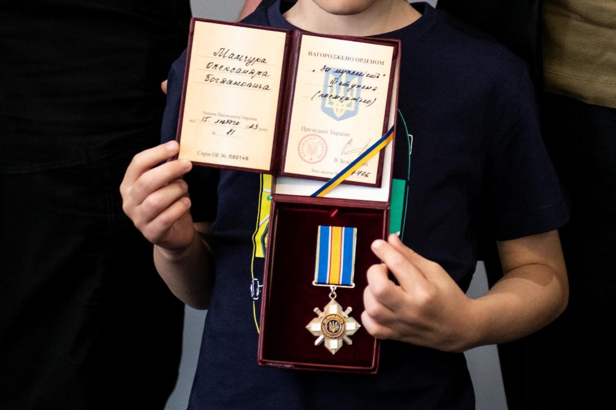 Відповідно до Указу Президента України за особисту мужність і самовіддані дії, виявлені в захисті державного суверенітету та територіальної цілісності України, сьогодні начальник ГУНП в Рівненській області Олександр Ганжа вручив посмертний орден "За мужність" ІІІ ступеня рідним головного вибухотехніка Рівненщини Олександра Мамчура.