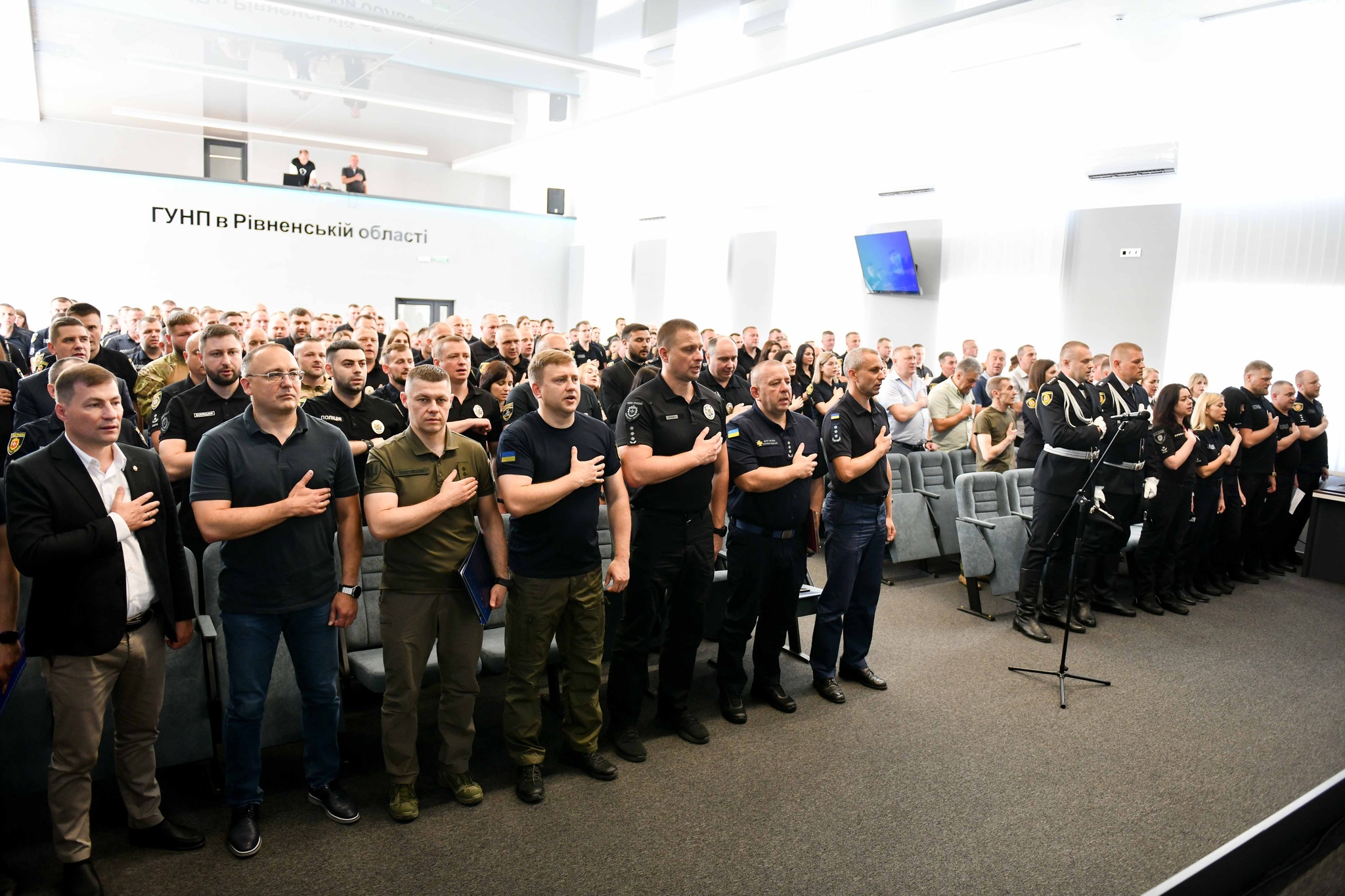 Хвилиною мовчання присутні вшанували полеглих за Україну Героїв, зокрема за час збройної агресії російської федерації загинуло 124 співробітники Нацполіції, серед них і шестеро рівненських поліцейських.