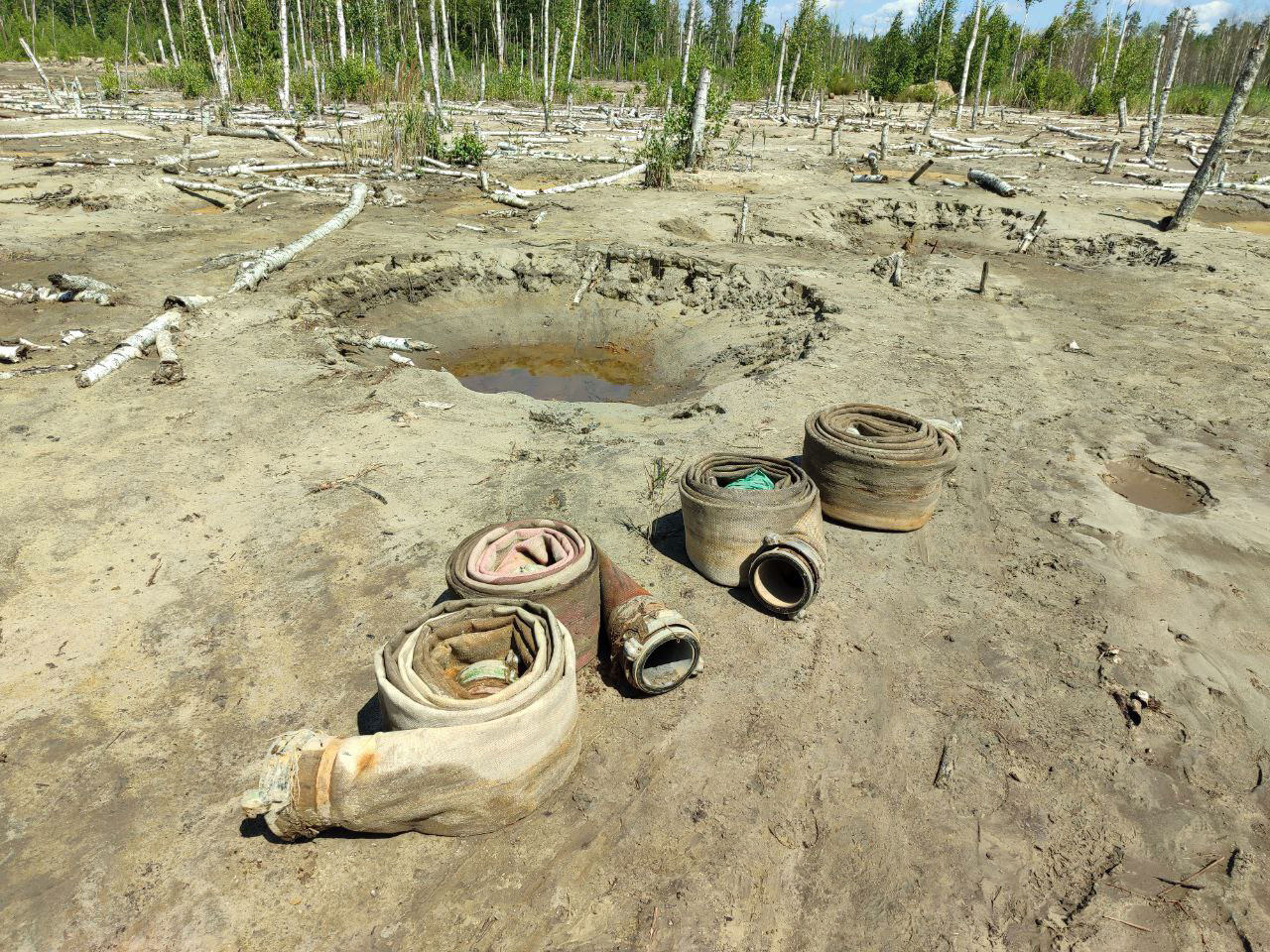 Також, під час проведення трьох обшуків за місцями проживання вказаних осіб, працівники поліції вилучили іще одну мотопомпу та бурштин.