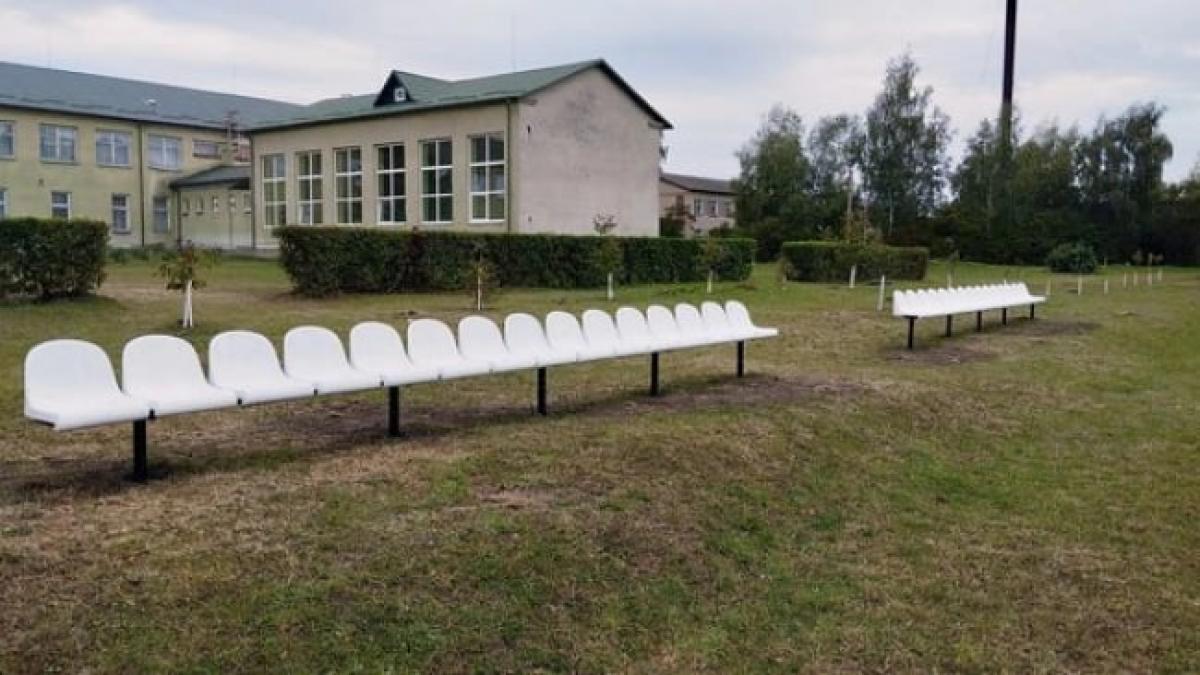 Відтак, біля шкільного стадіону Немирівського ліцею встановлені стільці для сидіння.