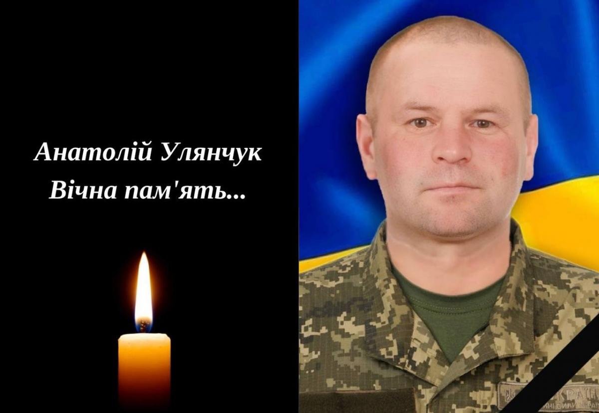 Анатолій був мужнім та сильним, до останнього життєвого подиху боровся за свободу, за мир, за вільне майбутнє кожного з нас. Солдат Улянчук Анатолій Володимирович 20 грудня 2023 року отримав поранення несумісні з життям. Він загинув в результаті ворожого обстрілу під час виконання бойового завдання поблизу населеного пункту Першотравневе Куп’янського району Харківської області.