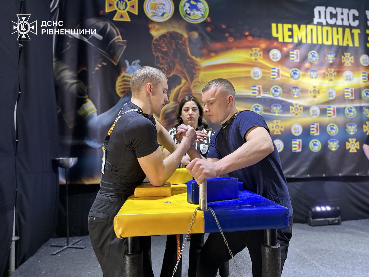 Рятувальник з Рівненщини Максим Усач продемонстрував неабияку силу волі та майстерність, здобувши перемогу у ваговій категорії 70 кг на праву та ліву руку.