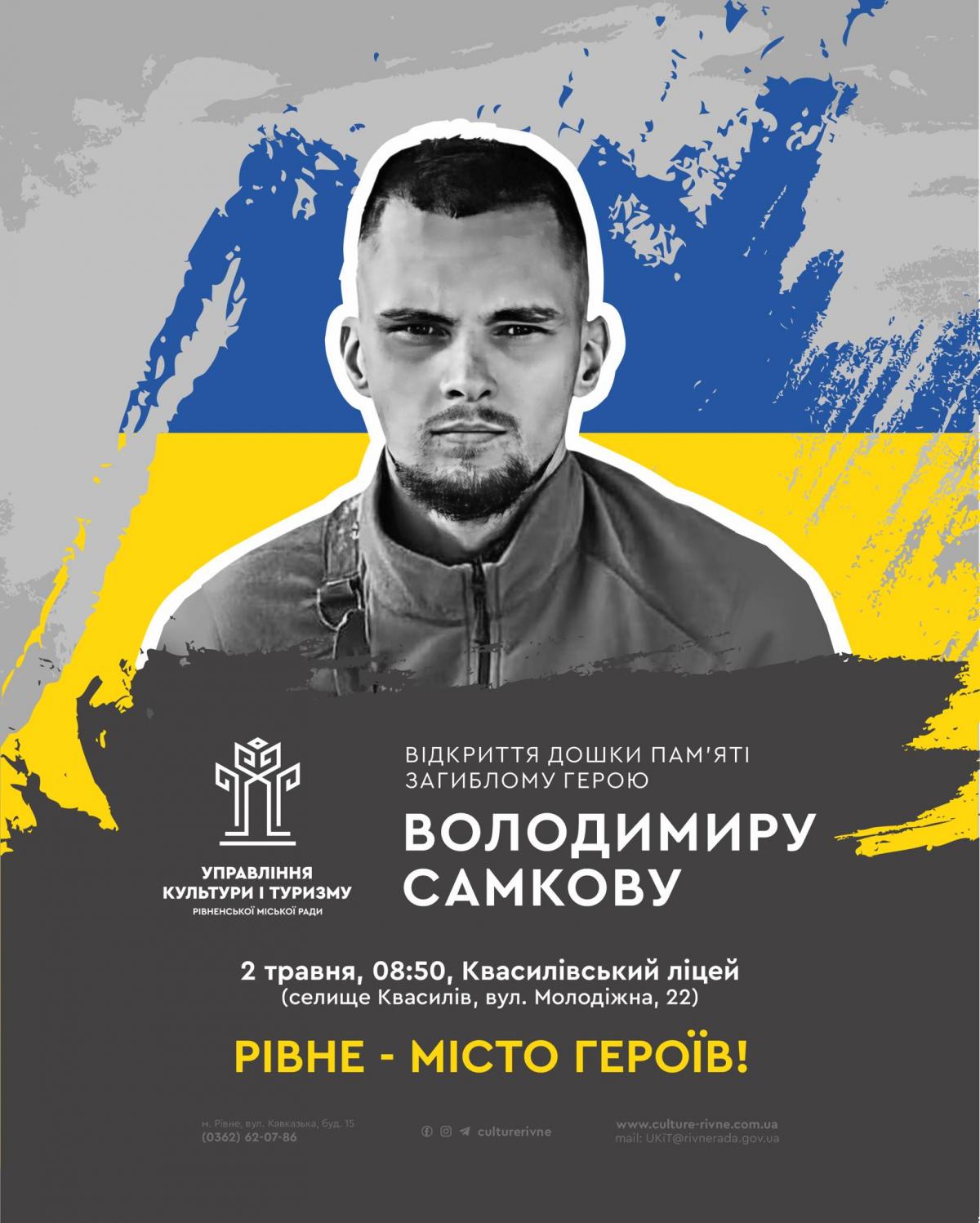 На жаль, 23-річний солдат Володимир Самков, будучи вірним військовій присязі, виявивши стійкість і мужність у бою за суверенітет, територіальну цілісність та незалежність України, загинув 12 травня 2024 року на Донецькому напрямку.