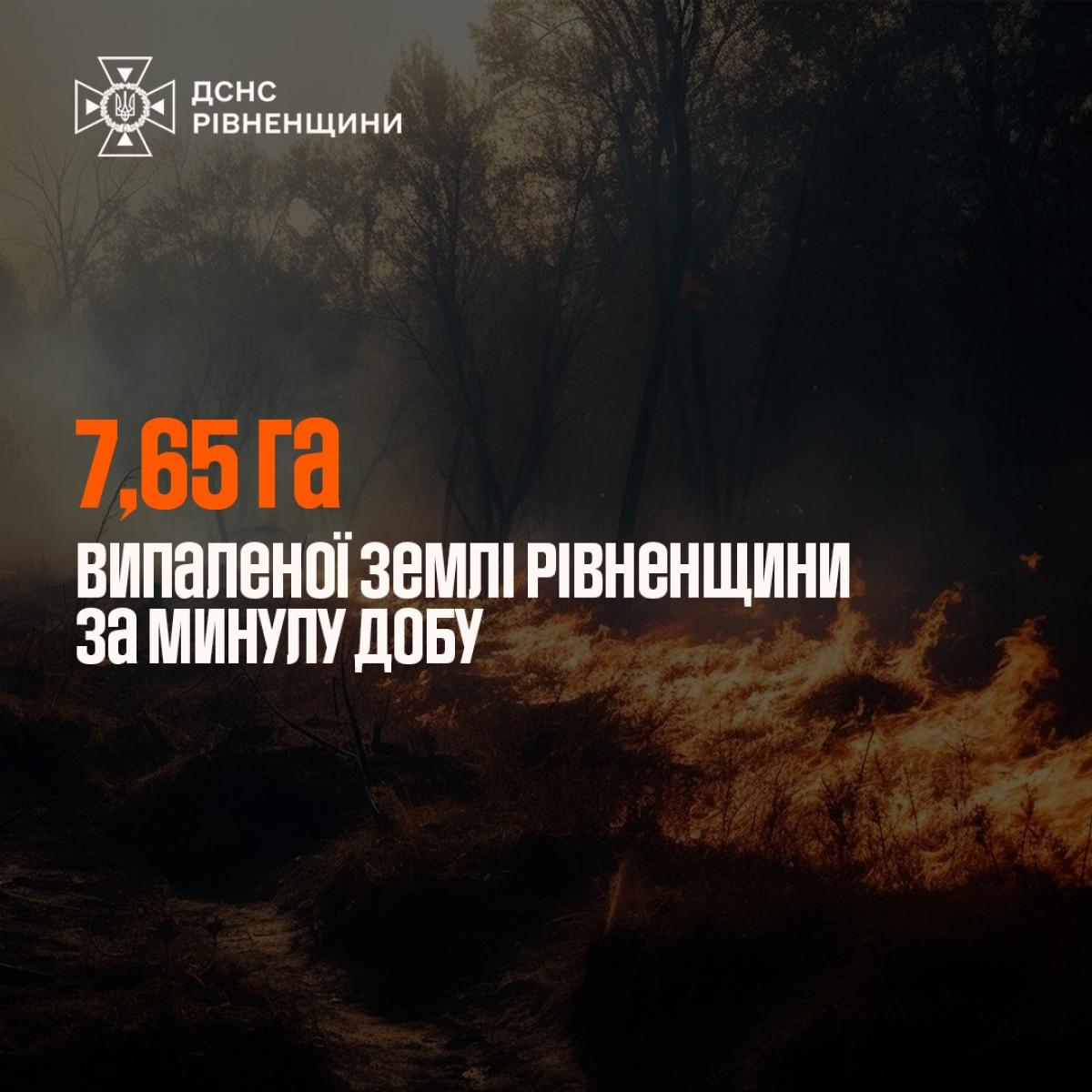 Протягом останніх 24 годин в області зафіксовано 10 випадків загоряння сухої рослинності на відкритих територіях. Загальна площа займання перевищила 7 гектарів.