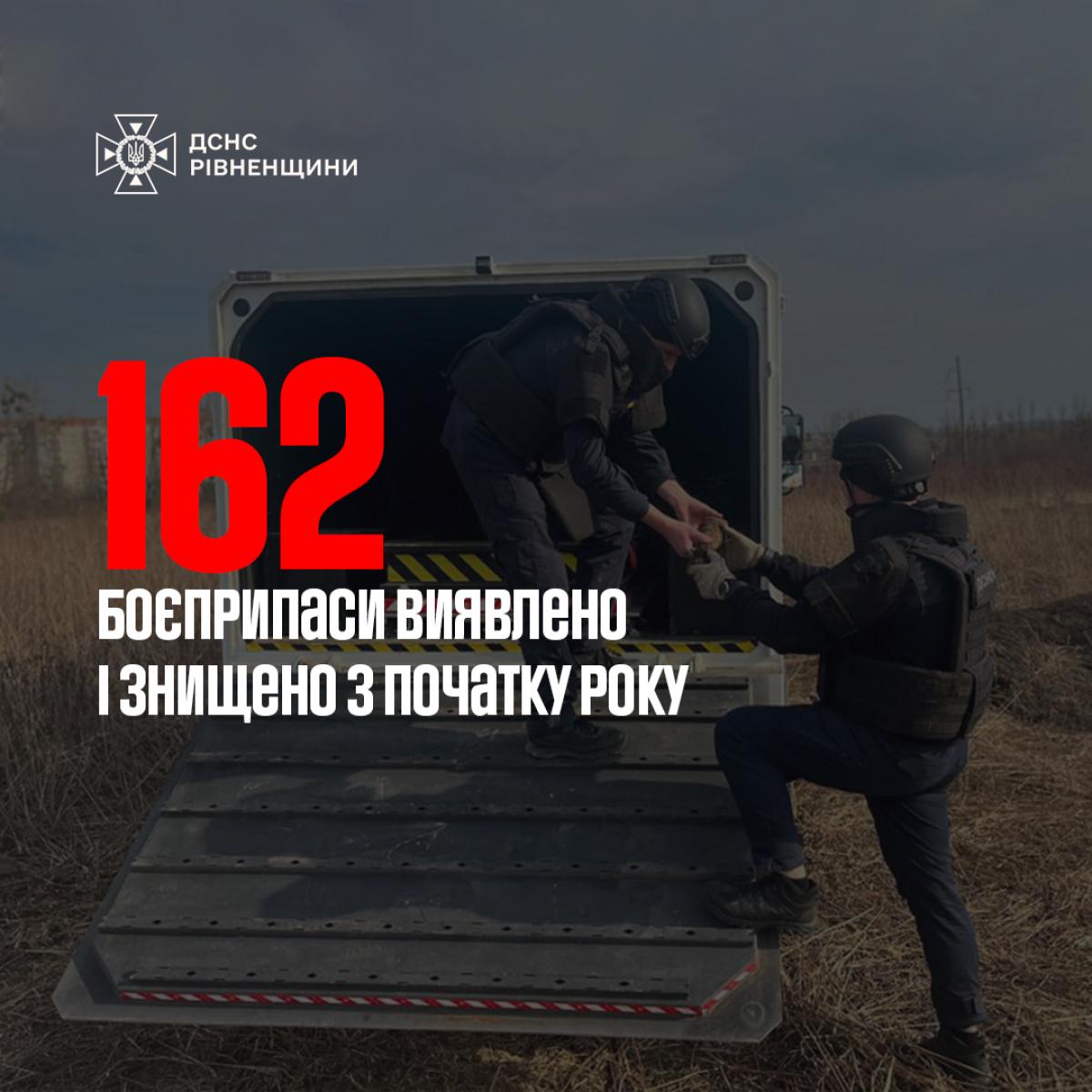 З початку року сапери обласного гарнізону ДСНС Рівненщини на території області знищили 162 вибухонебезпечних предмети часів Другої та Першої світових війн.